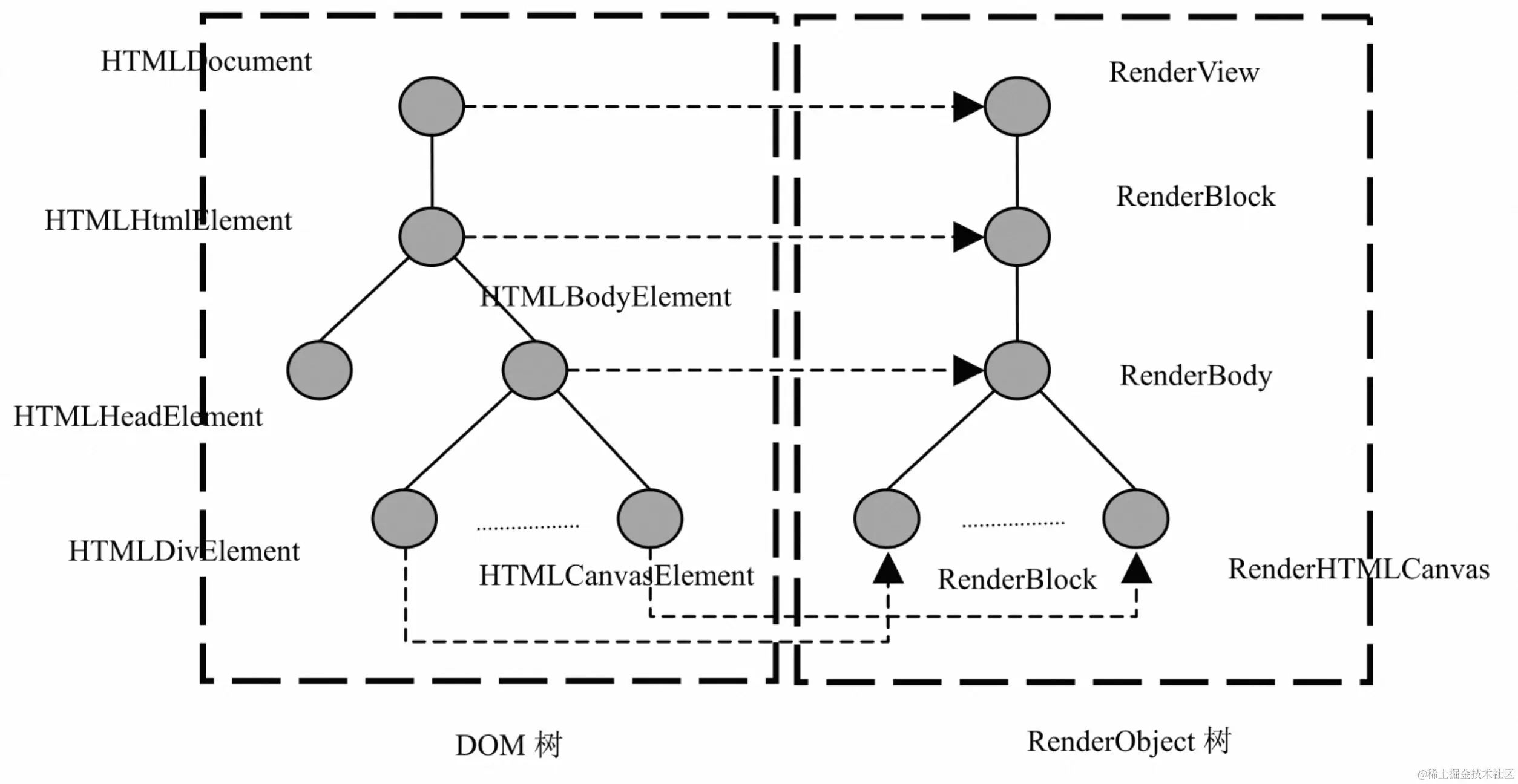 - RenderObject节点在创建的同时,WebKit会根据网页的层次结构创建RenderLayer树,同时构建一个虚拟的绘图上下文。