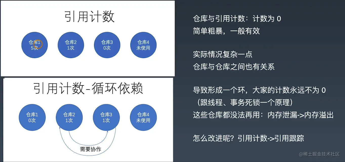 优化:引用计数->引用追踪(标记清除算法)