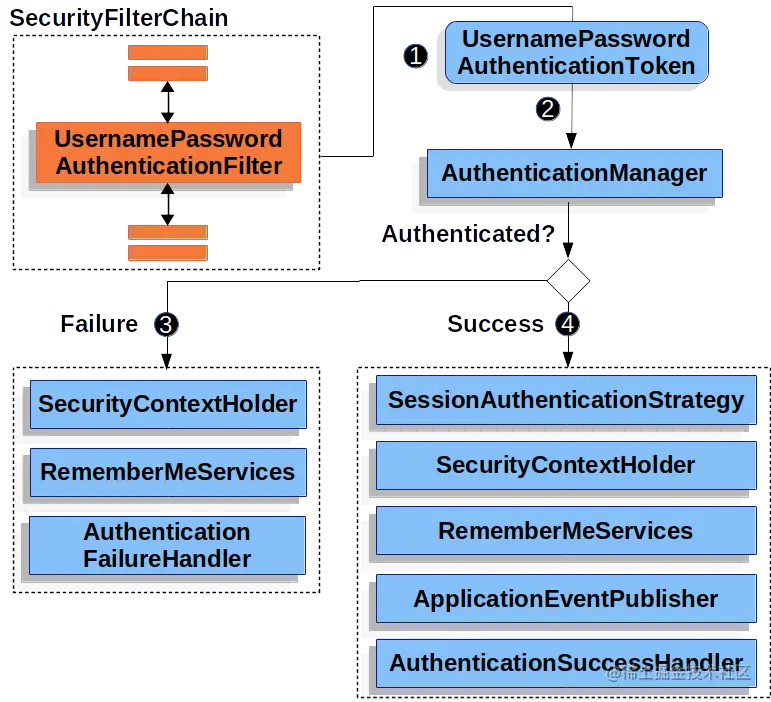 例如,DaoAuthenticationProvider支持基于用户名/密码的身份验证,同时JwtAuthenticationProvider支持对 JWT 令牌进行身份验证。