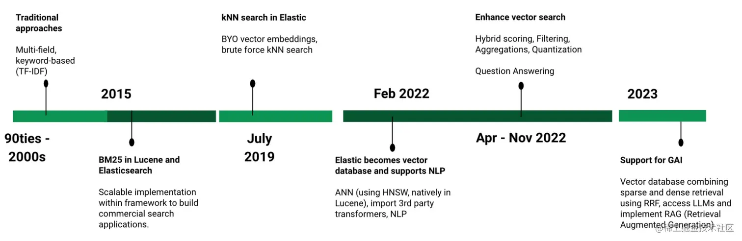 Elastic 提供的搜索创新时间表,包括自 2019 年以来建立矢量搜索功能
