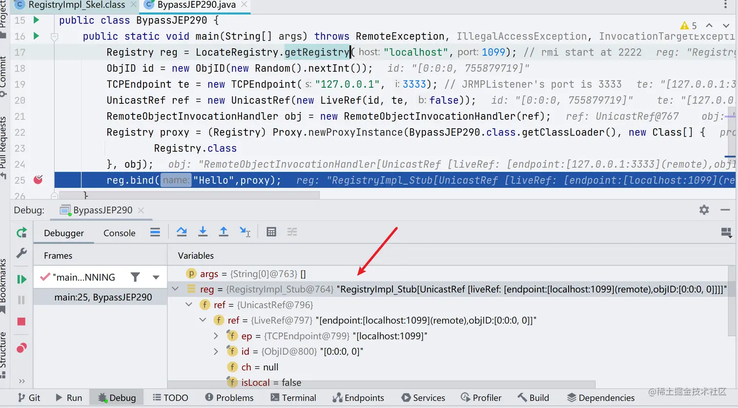 思考了在 RMI 的流程当中,哪一步能够绕过 JEP290 的检测,最终是 JRMP 的这一步,能够绕过,从原理图来说的话应该是这样