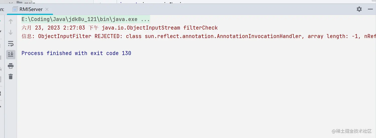java.io.ObjectInputStream filterCheck信息: ObjectInputFilter REJECTED: class sun.reflect.annotation.AnnotationInvocationHandler