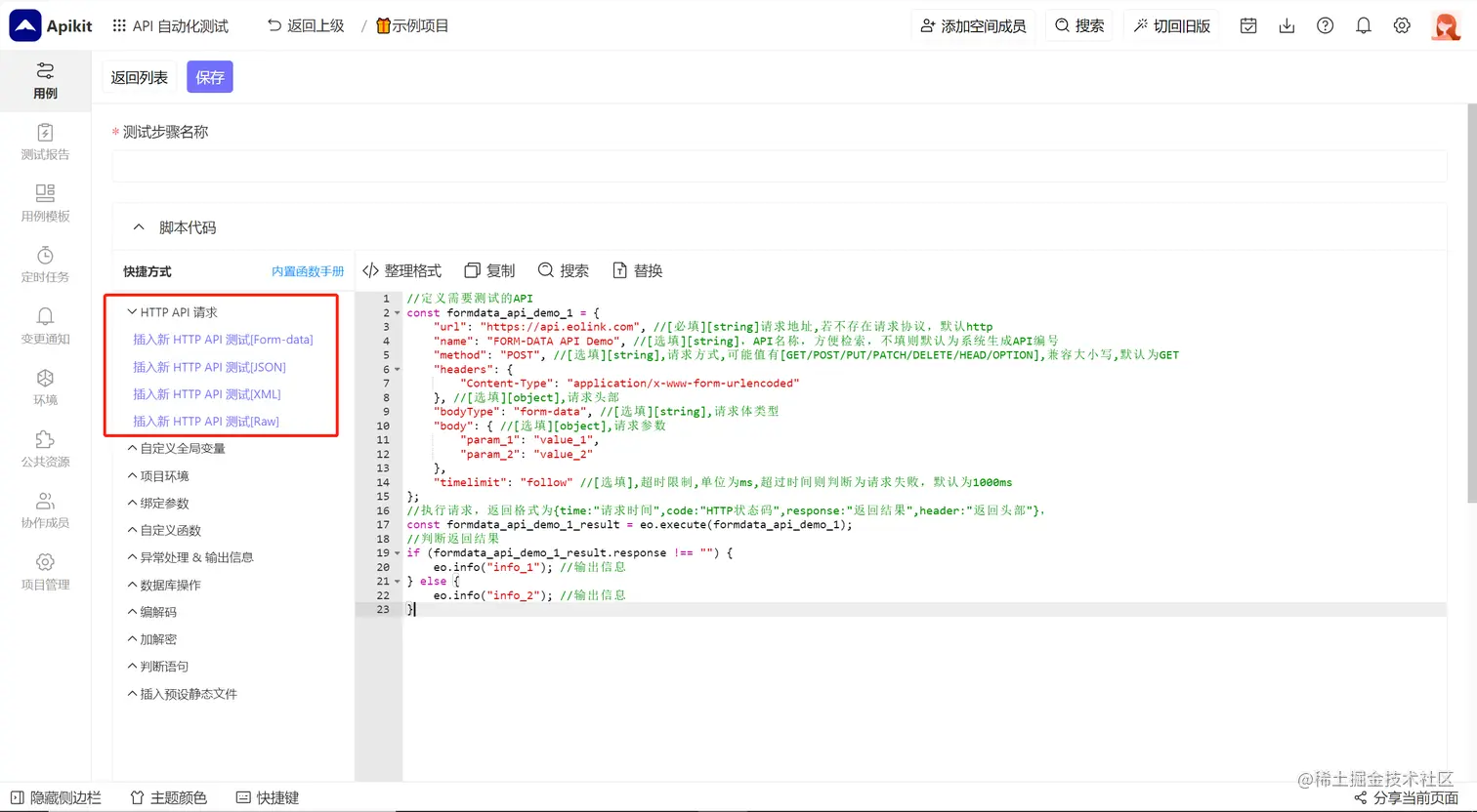进入编辑用例页面,点击 新API测试 新建一个 API 请求。