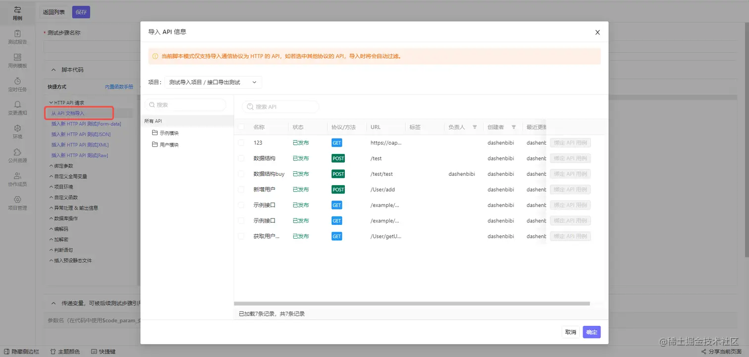 从API文档中引用API作为测试步骤(API)