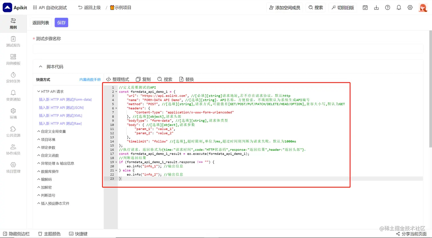 API 自动化测试平台为代码模式的测试用例设计了一套简单的API信息模板,因此只需要极少的代码即可完整地描述API信息,模板中各个字段含义如下: