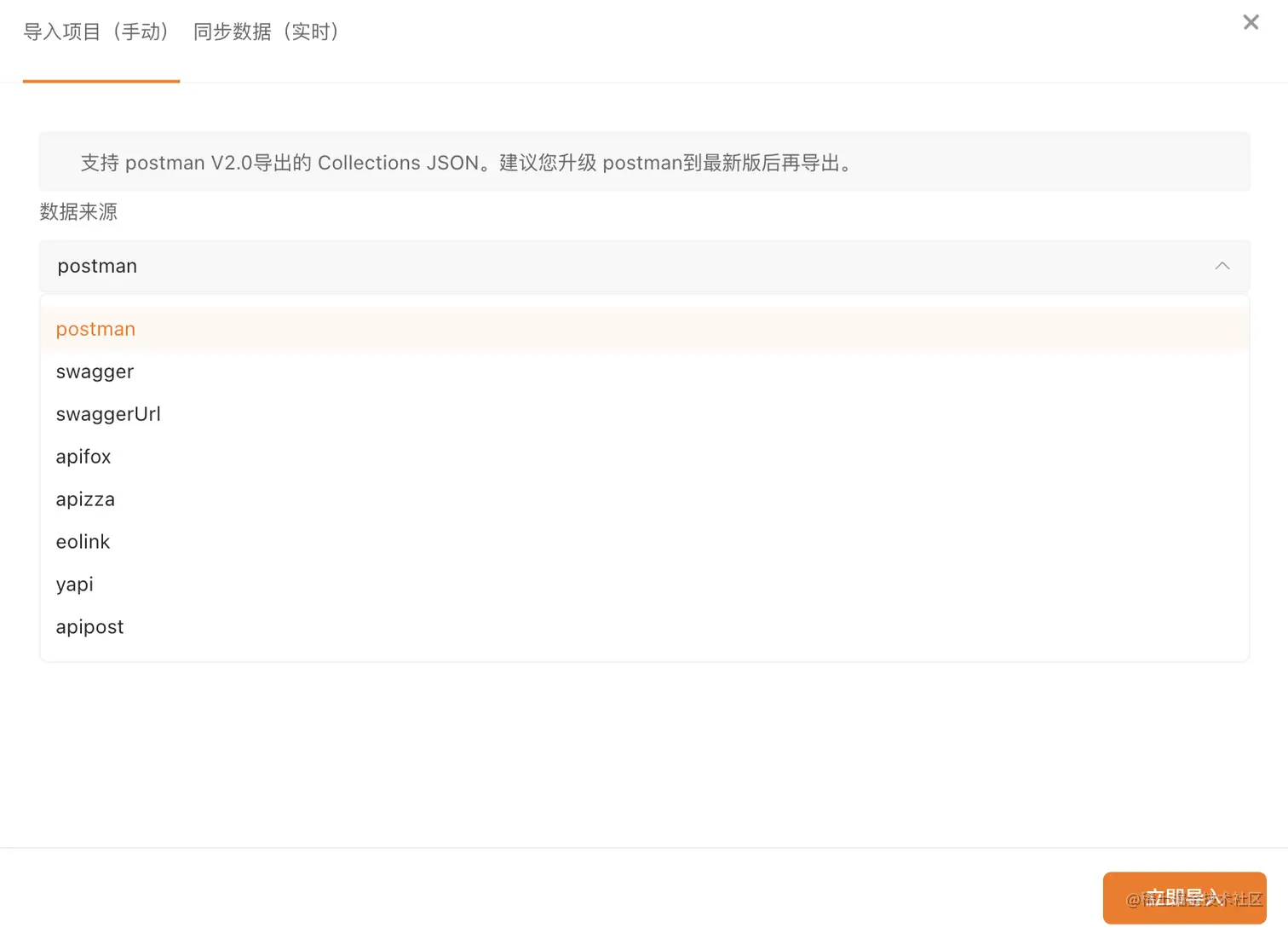 可以看到Apipost支持快速导入项目,点击后支持各个平台中导入项目