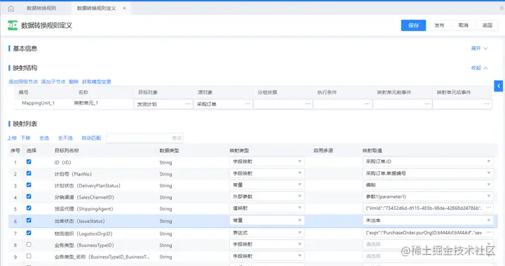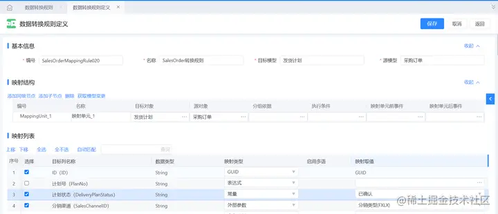 值映射:通过值映射解析,根据来源单据的某几个字段和值映射列表信息,返回一个值并赋值给目标单据字段;