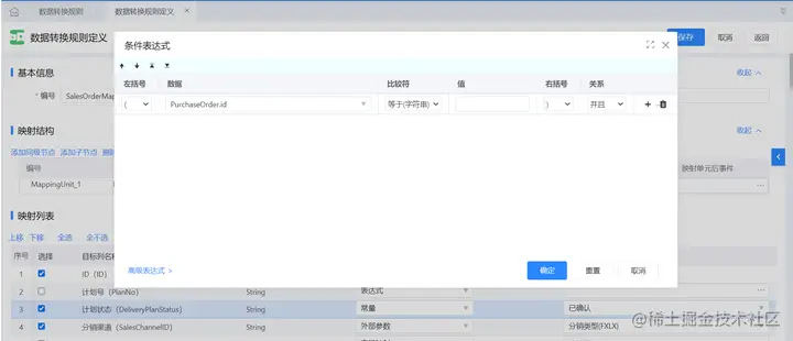 表达式:表达式中预置了来源单据模型信息、上下文变量信息,可以通过简单的数学运算、逻辑运算或字符串处理等操作实现数据的处理,返回一个值并赋值给目标单据字段;