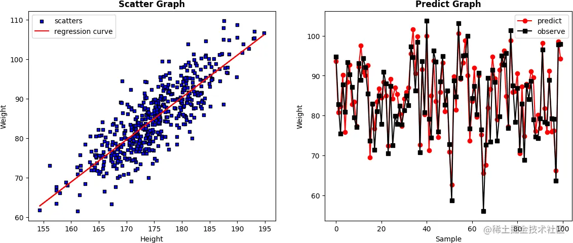 我们结合身高_体重曲线拟合案例,介绍一元线性回归的实际应用。本案例主要目的是根据身高和体重数据拟合一条最佳曲线,输入身高值就可以预测出体重。