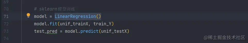 (3)LinearRegression()进行模型训练,求解参考式(2.1.8)正规方程