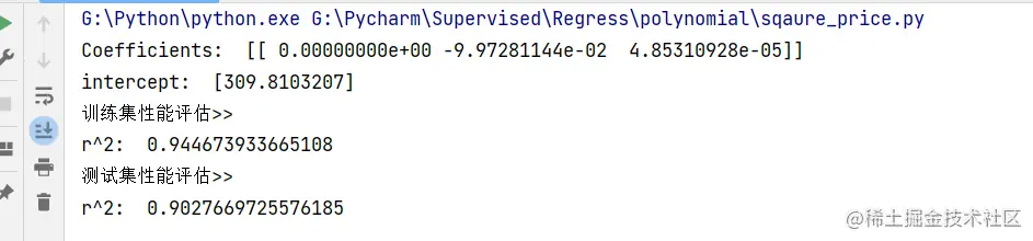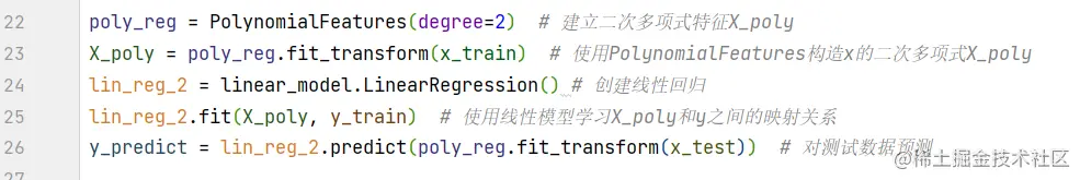 (3)建立一元二次多项式,使用线性回归模型对参数进行训练