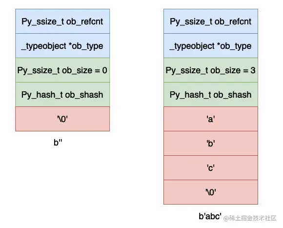 我们可以使用一个写例子来看一下实际的 PyBytesObject 内存空间的大小。