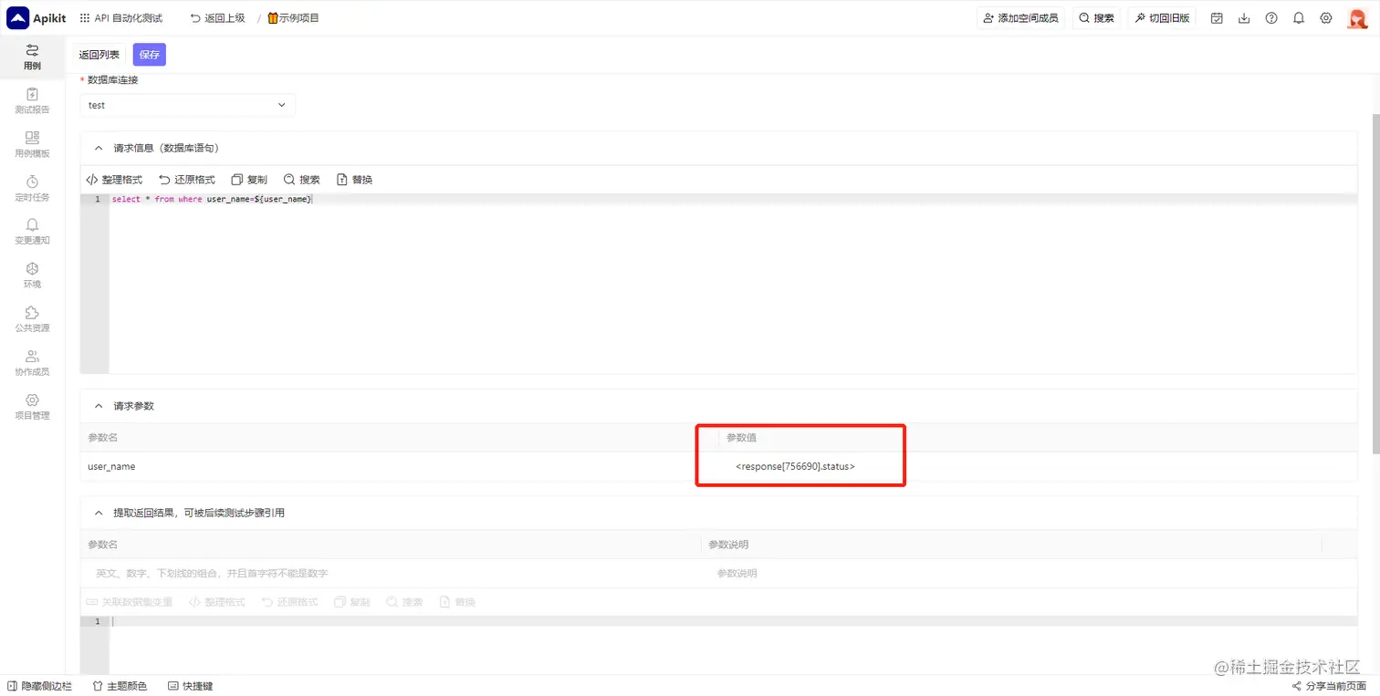 数据库的返回结果可以传递给后续测试步骤中进行使用。