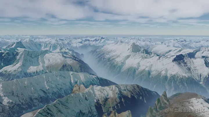 上一篇文章我们已经将大气散射和空气透视的效果整合到了CesiumJS之上,不过真实感渲染除了大气部分,还有体积云和高度雾。照例我们先看下山海鲸中的效果图