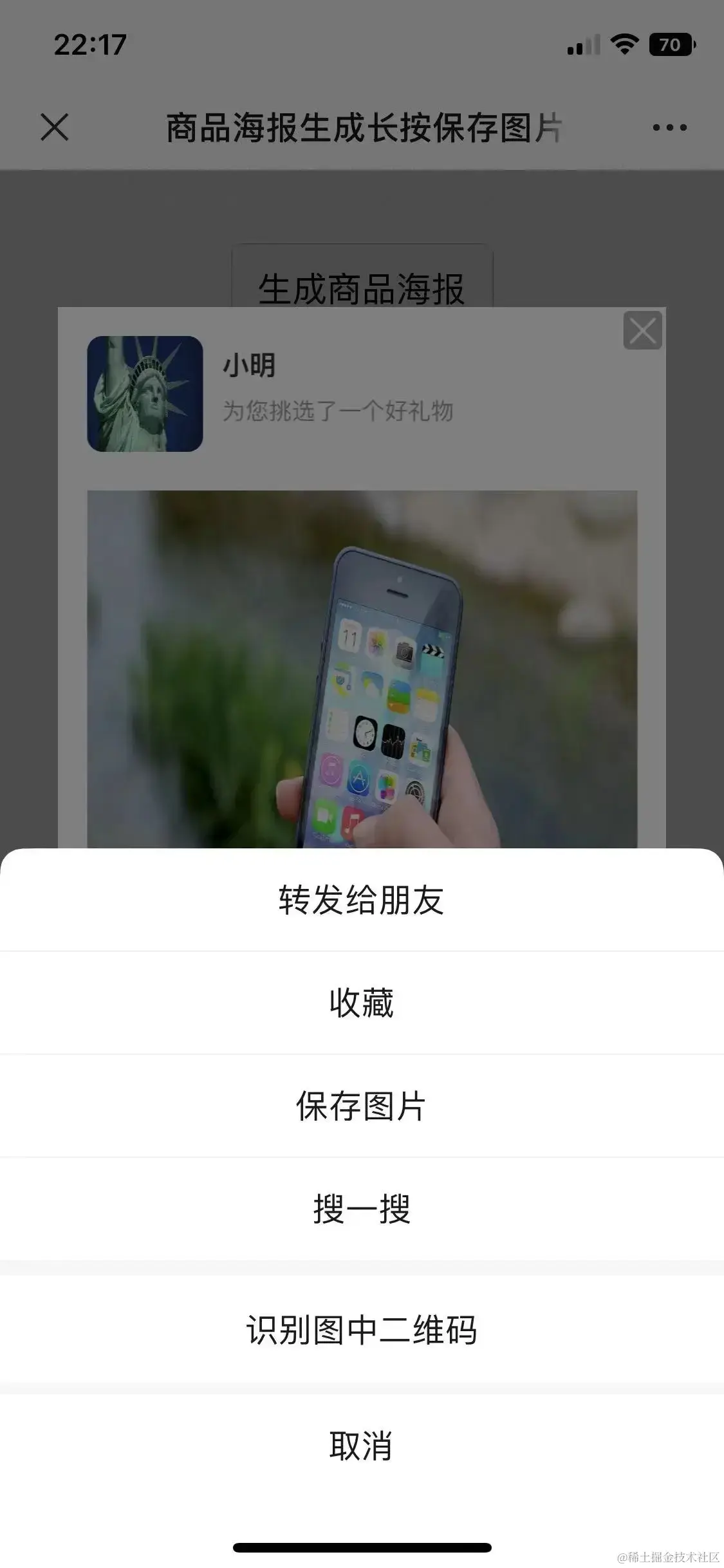 <button style="margin-top: 38px;" @click="openPoster">生成商品海报</button>