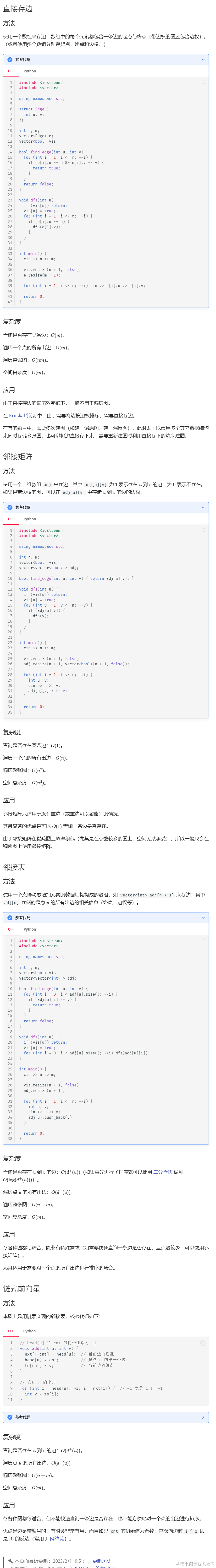- 图的表示的方法有:邻接矩阵、邻接表、链式向前星