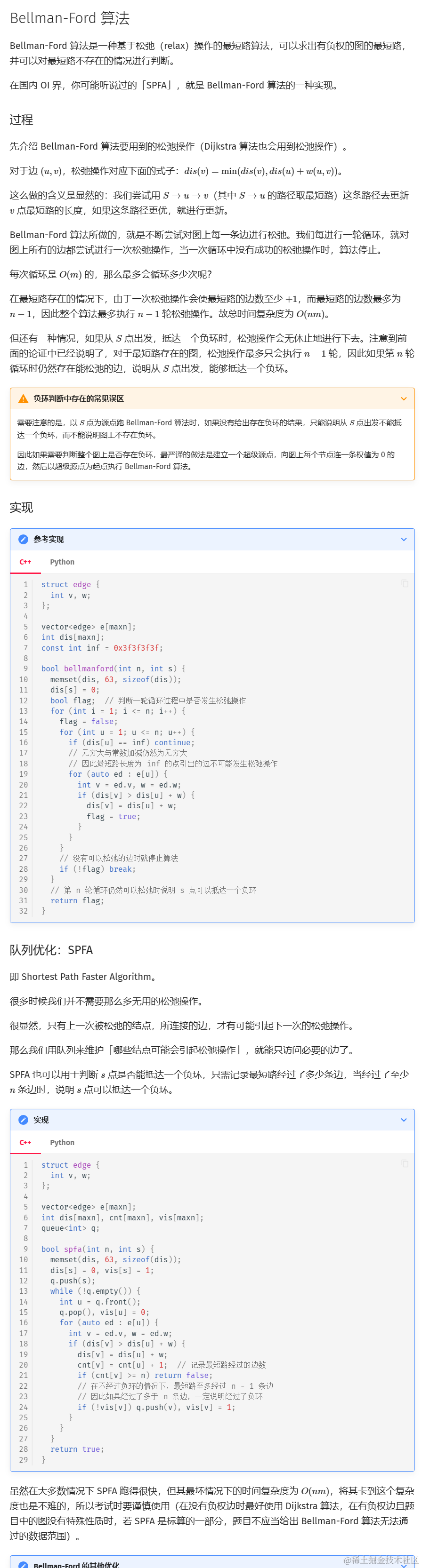 - 一般来说,一个图存在负环,就不可能有最短路,所以用处不多,最多用来判断是否存在负环