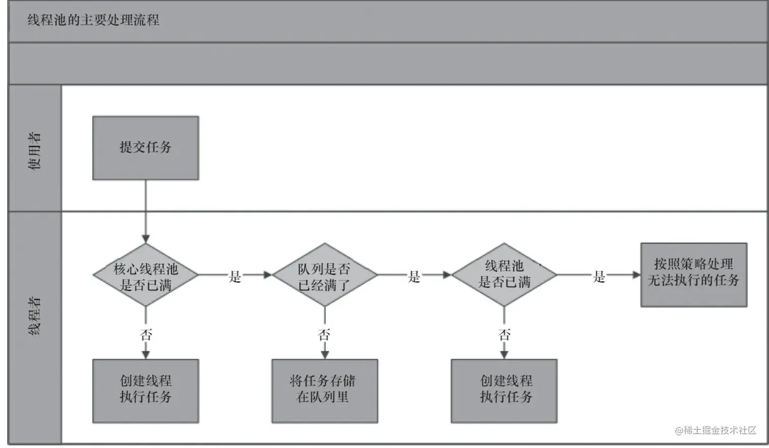 当向线程池提交一个任务之后,线程池是如何处理这个任务的呢?本节来看一下线程池的主要处理流程,处理流程图如图3-1所示: