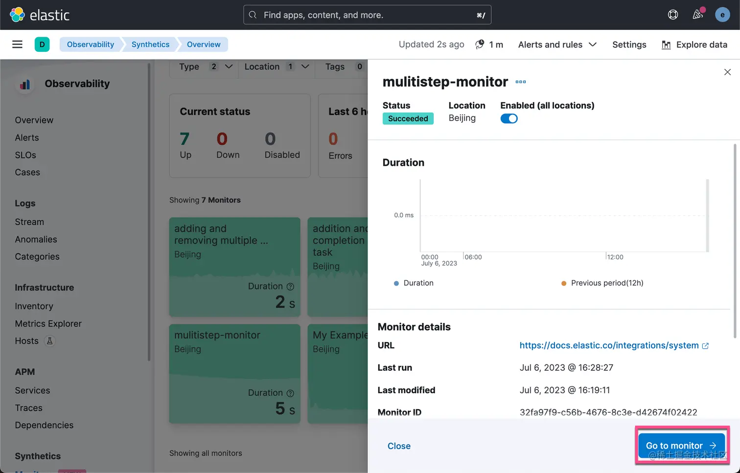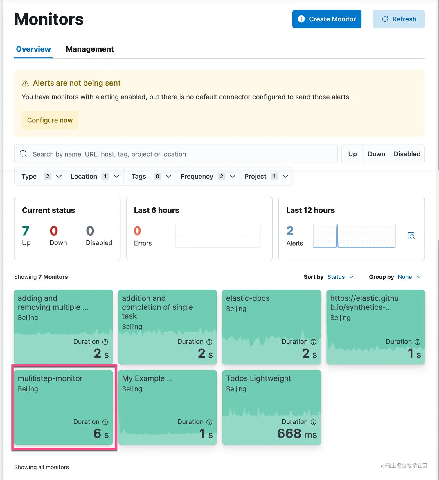 我们在 Overview 的页面可以看到新创建的 multisetep-monitor。