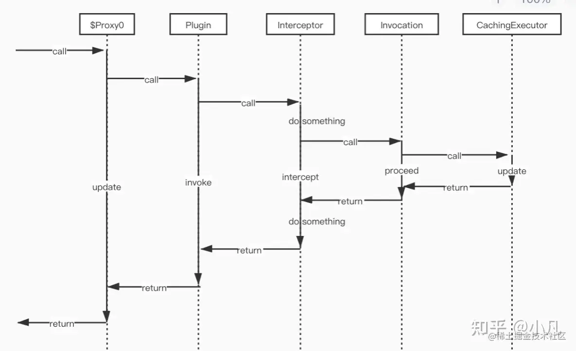 假设一开始生成了一个代理类类名为$Proxy0,在InterceptorChain#pluginAll方法中,会将这个代理类作为委托类继续生成一个新的代理类,第一个代理类会执行ExamplePluginA拦截逻辑,第二个代理类会执行ExamplePluginB的拦截逻辑。
