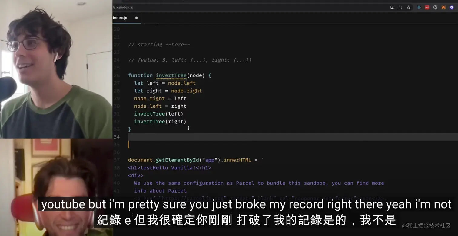 Dan 很快给出了答案,看来常年维护 React,对树方面的操作必须是手到擒来了,主持人打趣说 Dan 破了他保持的最快反转二叉树的记录。