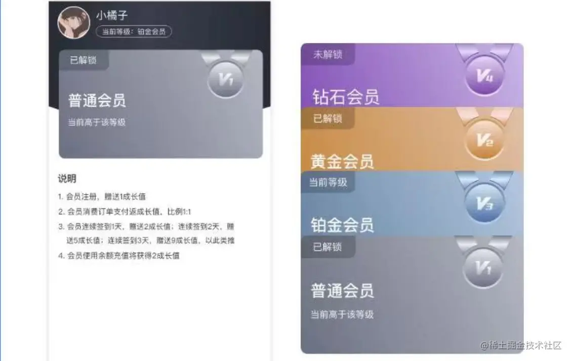 通过会员消费、积分签到、邀请好友等不断获得成长值升级,不同等级会员,体现身份尊贵感