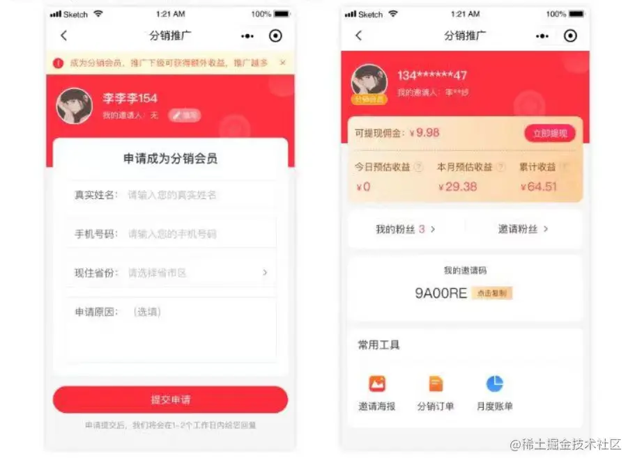 申请成为分销员,可分享海报给好友,发展下级拿佣金奖励,分销订单一目了然