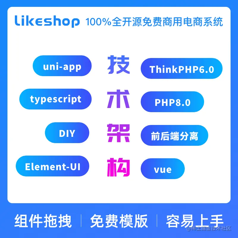 基于ThinkPHP6.0、Vue、uni-app、PHP8.0、MySQL5.7、element-ui等主流通用技术开发的一套likeshop单商户商城系统,真正做到好懂,易改,不绕弯