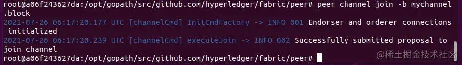 - 我们先把 peer0.org1.example.com 加入通道,使用下面的命令: