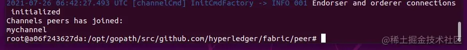 root@0d78bb69300d:/opt/gopath/src/github.com/hyperledger/fabric/peer#