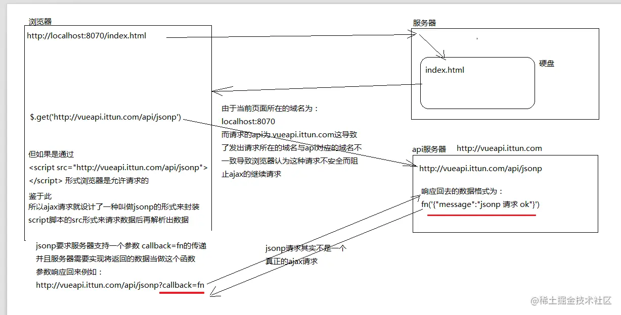 再把这个回调方法的名称,通过URL传参的形式,提交到服务器的api接口;