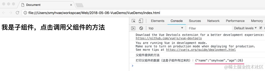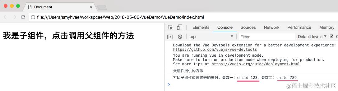 console.log('打印子组件传递过来的参数。参数一:' + arg1 + ',参数二:'+ arg2);