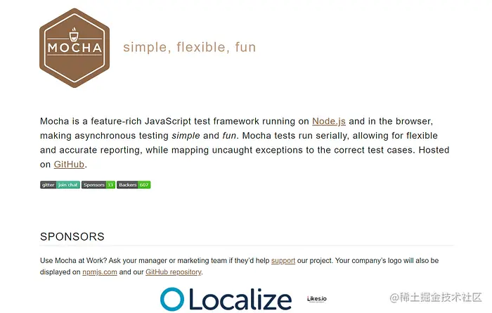 Mocha 是一个功能丰富的 JavaScript 测试框架,可在 Node.js 和浏览器中运行。它提供灵活直观的测试 API,支持异步测试,并提供详细的报告。Mocha 广泛用于测试后端和前端 JavaScript 应用程序。