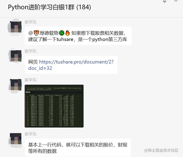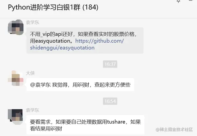 这个事情还得从前几天在Python白银群【厚德载物】问了一个Python股票网络爬虫的问题说起,因为这个股票数据抓取的问题,引发了大家激烈的探讨,以致于后来大佬们纷纷参与进来。