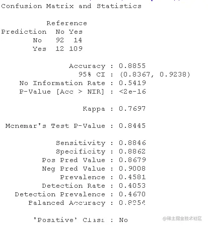 从训练数据的混淆矩阵中,我们知道模型有88.55%的准确性。