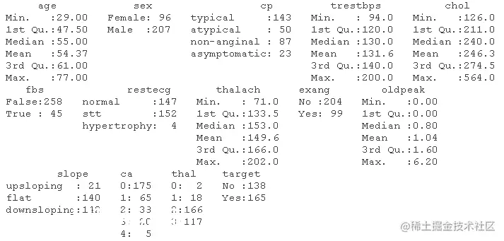 - 目标是预测变量,告诉我们这个人是否有心脏病。因此,我们将该变量转换为因子,并为其贴上标签。