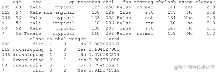 我们可以看到,预测的分数是患心脏病的概率。但我们必须找到一个适当的分界点,从这个分界点可以很容易地区分是否患有心脏病。