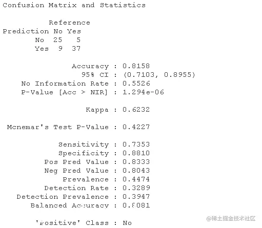 我们可以得出结论,我们的准确率为81.58%,90.26%的预测值位于曲线之下。同时,我们的错误分类率为18.42%。