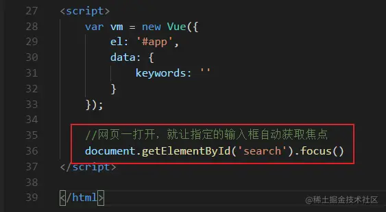 //原生js写法:网页一打开,就让指定的输入框自动获取焦点