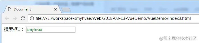 <input type="text" id="search" v-model="name" v-color="'green'">
