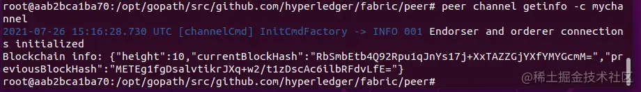 peer channel getinfo -c mychannel