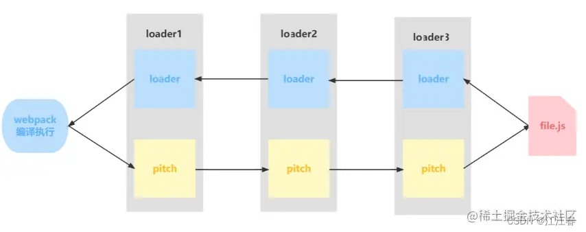 webpack 会先从左到右执行 loader 链中的每个 loader 上的 pitch 方法(如果有),然后再从右到左执行 loader 链中的每个 loader 上的普通 loader 方法。编辑