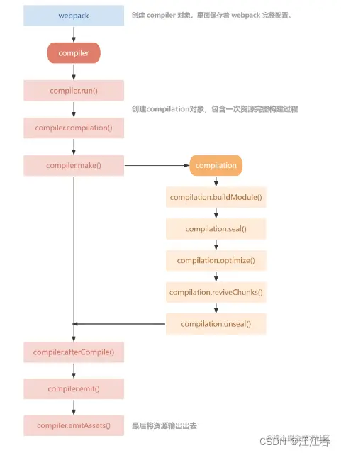 compilation.modules可以访问所有模块,打包的每一个文件都是一个模块。compilation.chunkschunk 即是多个 modules 组成而来的一个代码块。入口文件引入的资源组成一个 chunk,通过代码分割的模块又是另外的 chunk。compilation.assets可以访问本次打包生成所有文件的结果。compilation.hooks可以注册 tapable 的不同种类 Hook,用于在 compilation 编译模块阶段进行逻辑添加以及修改。
