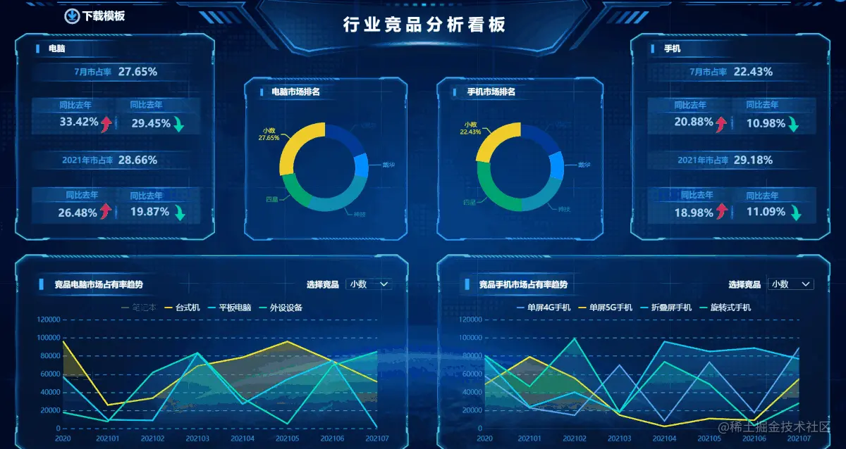 这份模板也分享给大家,至于大屏工具FineVis, 听说它是低代码的大屏搭建平台,还在使用中,等我反馈!
