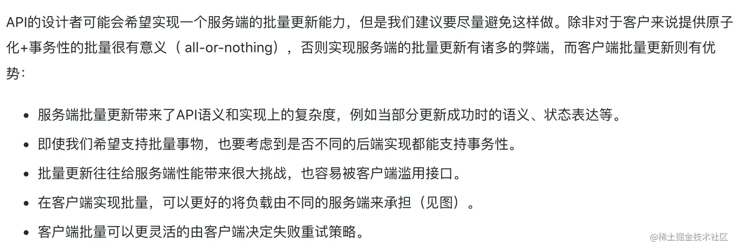 List size limit, property max length limit等,要在开放API的第一时间公布出去。如果开始不约束,后期加约束可能遭遇大的阻力和沟通成本。此外,遵循从严开始的规律,为自己争取主动:你把限制放开,没人找你岔,反之则阻力大。例如:order.items max size limit由100变成200,你可以放心地做;但由200变成100,你要征得现有使用者的全部确认。