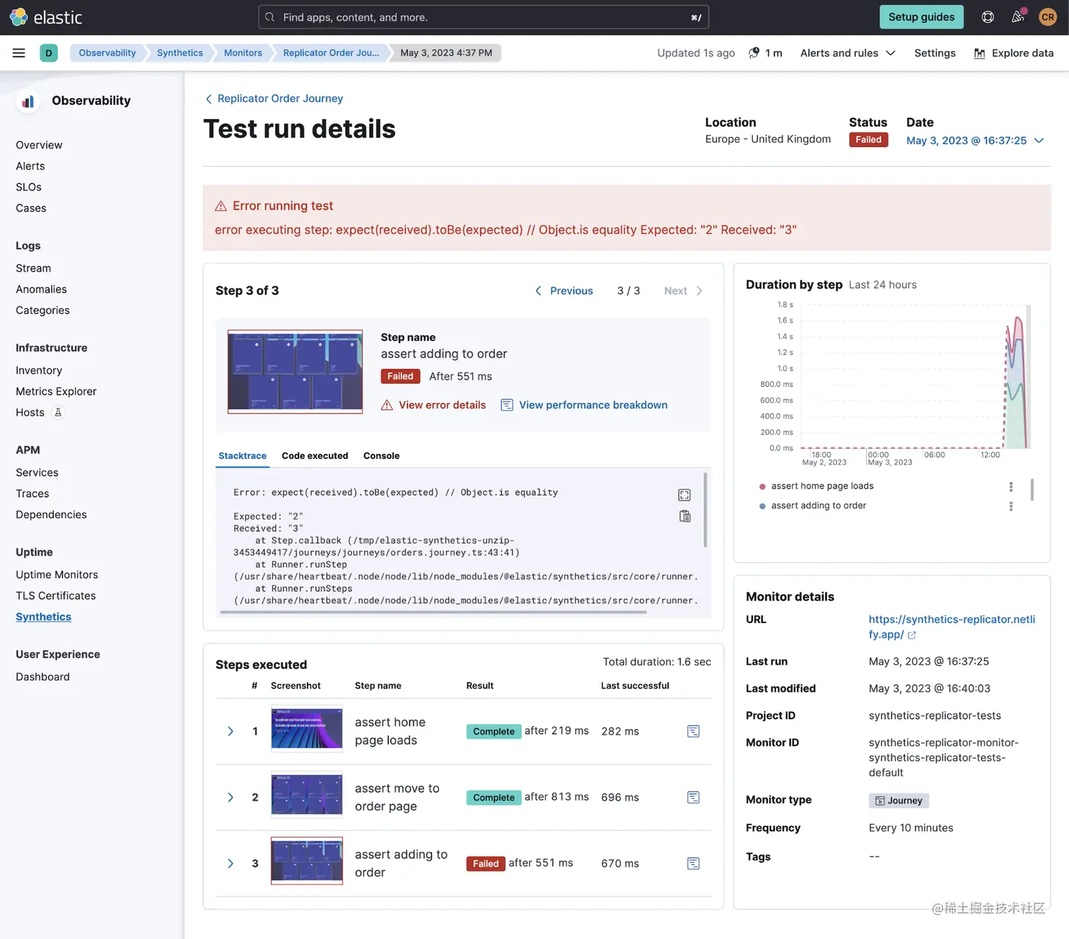 Elastic 最近引入了合成监测,正如我们在之前博文中所强调的,它可以完全取代端到端测试。通过合并使用单一工具来早期验证用户工作流,便可提供一种通用的语言来重现用户问题,以验证修复的结果。