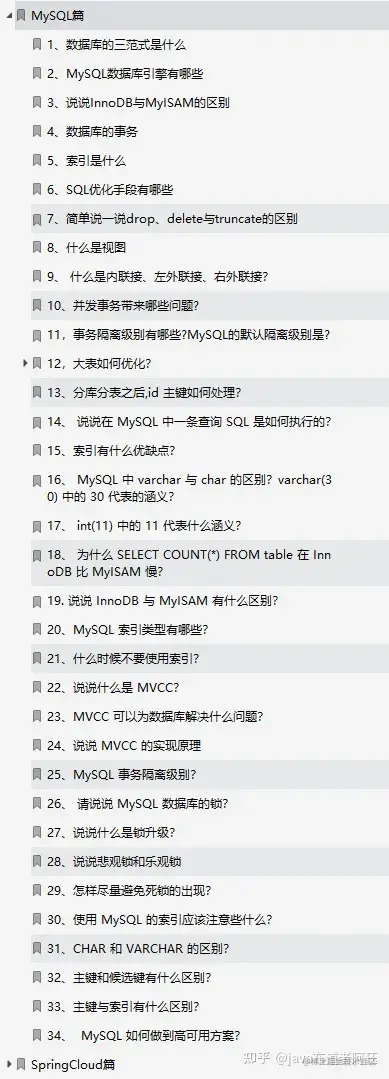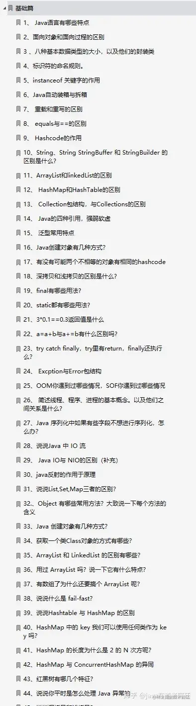 这份面试总结比较多,就不一一的详细介绍了,粗略的将主要内容展示一下,其中含有20+的知识点