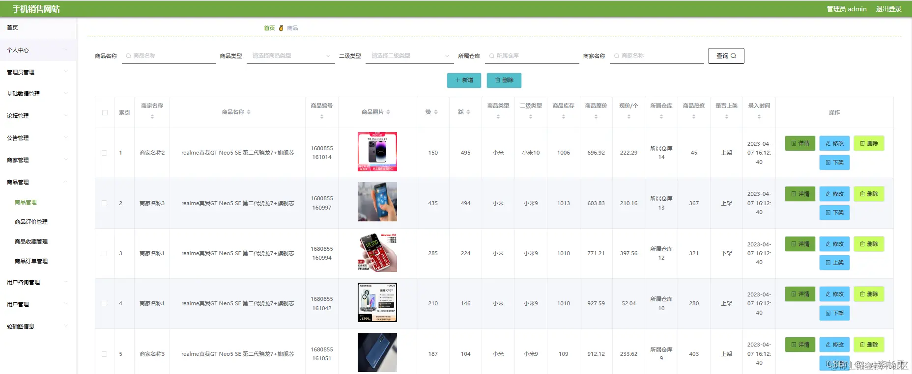 实现了收货地址管理、购物车管理、字典管理、论坛管理、公告管理、商家管理、商品管理、用户咨询管理、商品收藏管理、商品评价管理、商品订单管理、用户管理、管理员管理等功能。手机销售网站的开发根据操作人员需要设计的界面简洁美观,在功能模块布局上跟同类型网站保持一致,程序在实现基本要求功能时,也为数据信息面临的安全问题提供了一些实用的解决方案。可以说该程序在帮助管理者高效率地处理工作事务的同时,也实现了数据信息的整体化,规范化与自动化。。