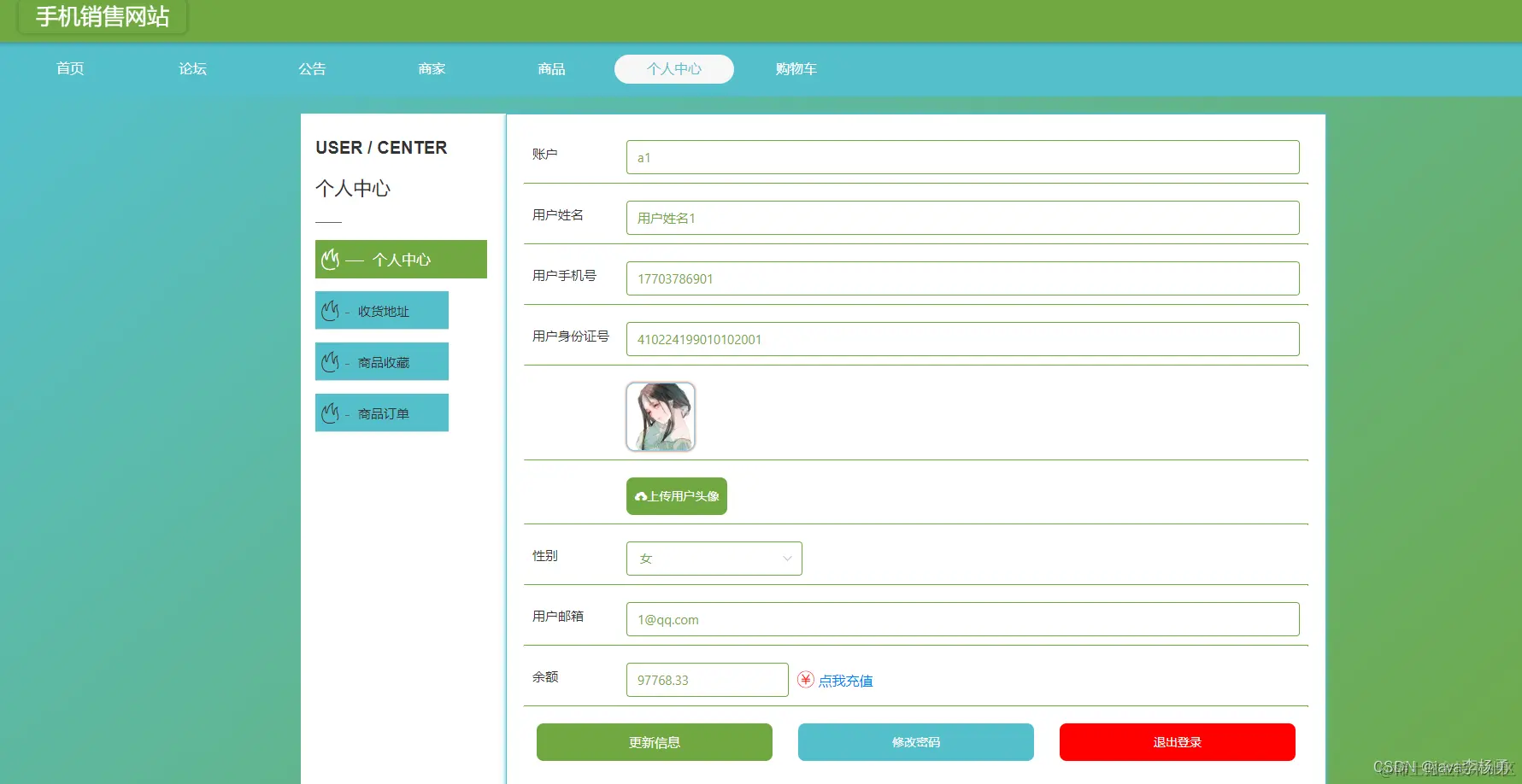 用户个人中心首页