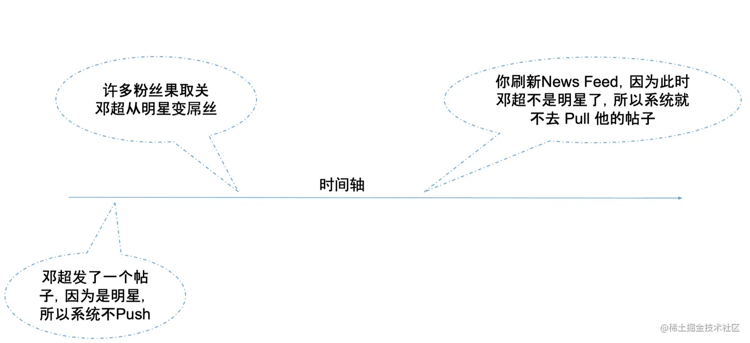 - 对于明星用户,不 Push 到用户的 News Feed 中